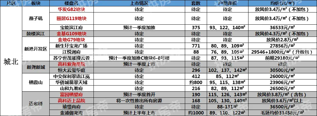 城北上半年要上市的新盘有近20家,比较热门的燕子矶、鼓楼滨江都有供应。