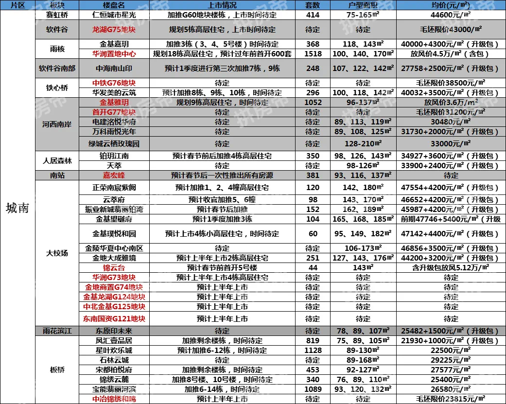 去年城南板块可谓是占尽了热度,今年供应同样不少,预计将有36盘上市。
