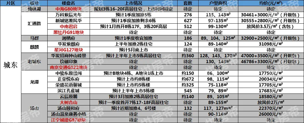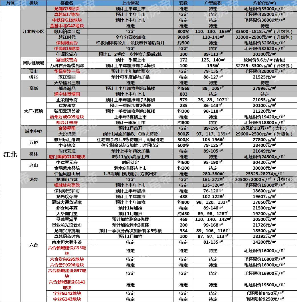 除此之外还有深业G111、栖霞建设G112、南京建邺城建G113、保利G114、中北盛业G115待上市,预计上市价格都在5万+。