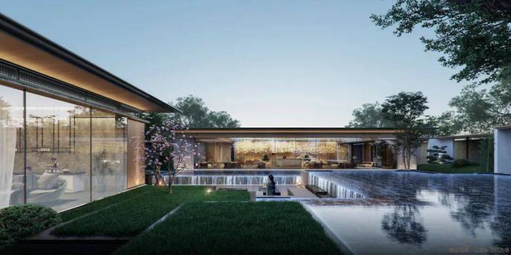 “瑧悦”系从宋画中提取青绿元素,作为主题色点缀于建筑、室内、园林、标识等设计之中,营造温润雅致的青绿之韵;为了做出更好的视觉,全区采用一体化设计,将体现东方意韵的考究细节贯穿到整个项目。