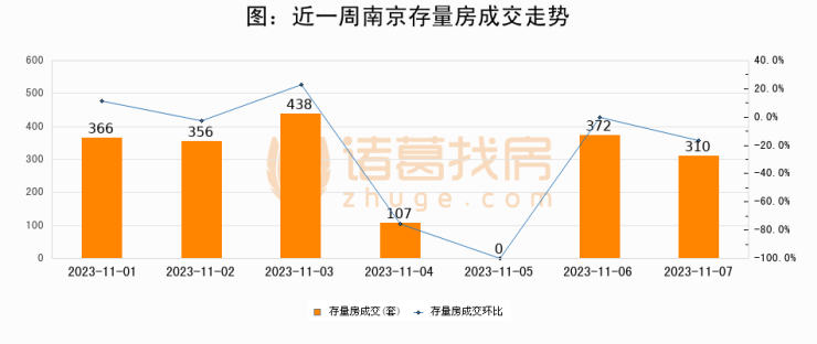 从存量房来看,2023年11月07日南京存量房单日成交310套,比昨日减少62套,环比下降16.7%。从近一周存量房成交来看,南京存量房日均成交套数为278套,11月07日单日成交310套,高于近一周平均水平11.5%。