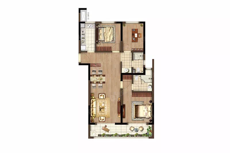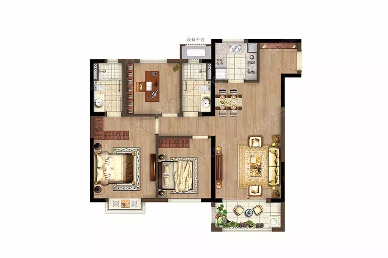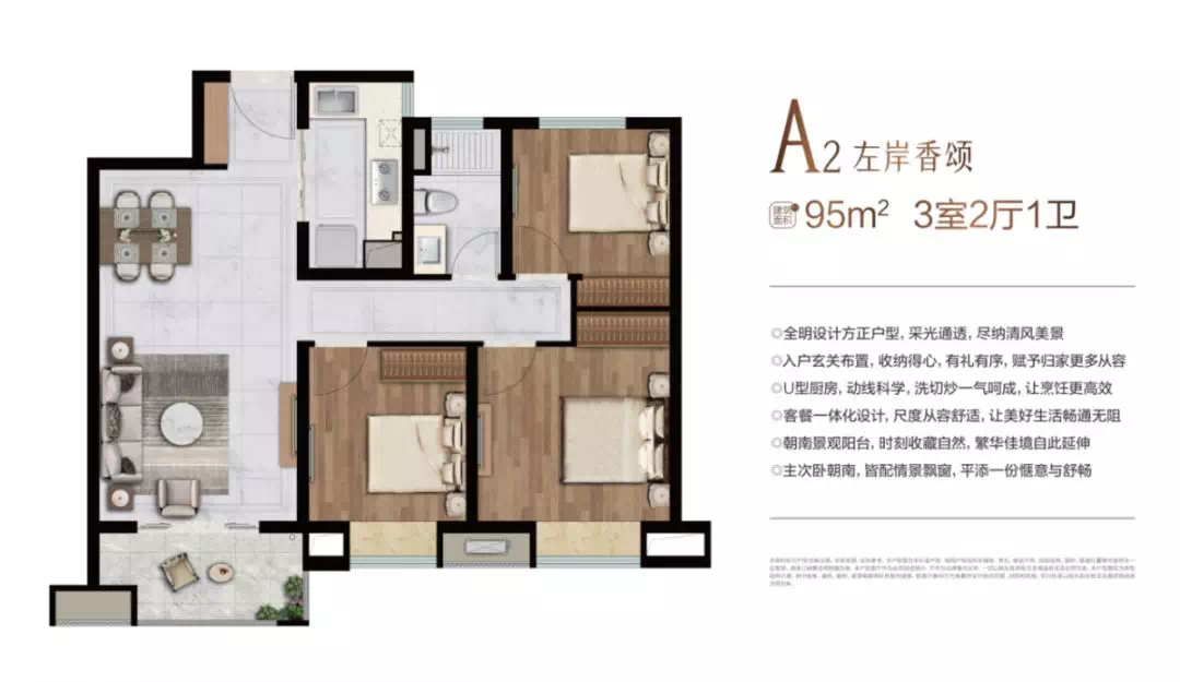 户型设计上,项目得房率大概在75%-78%。最小95㎡是三房一卫设计,115、119㎡是三房两卫设计,126、143、164均为四房两卫设计。