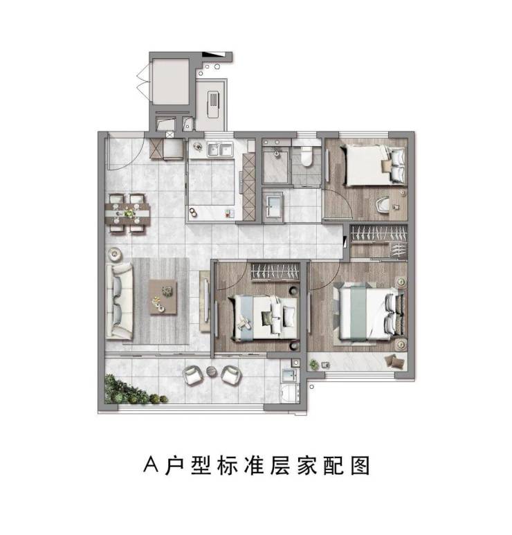 三大件为日立中央空调、兰舍/百朗/爱迪士新风、史密斯/菲斯曼/威能地暖,均是国际一线品牌。