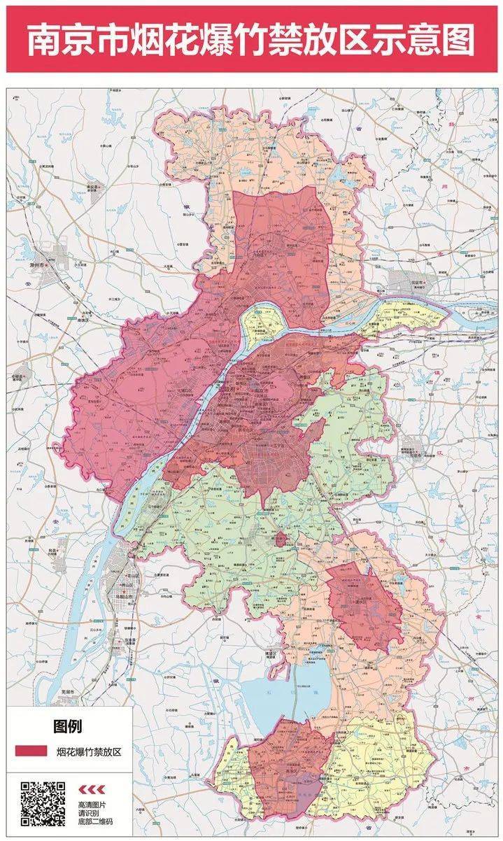 玄武、秦淮、建邺、鼓楼、雨花台、浦口区及江北新区管委会辖区全域禁放。