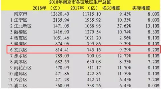 正因为目前能够变现的土地少得可怜,玄武区2018年的全区GDP只有814亿,在全南京12个区中仅仅排名第六,属于不折不扣的“中等生”。