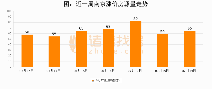 根据诸葛找房数据显示,南京24小时涨价房源量为65套,较07月18日增加6套,环比上涨10.2%。与此同时,涨价房源占比小幅扩大,业主信心有所提升。