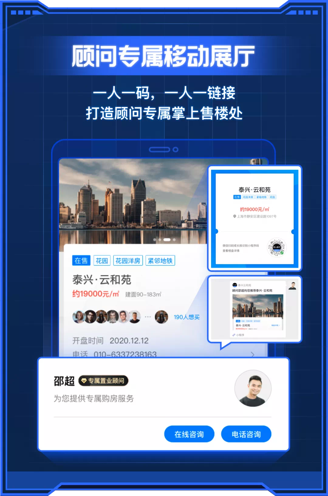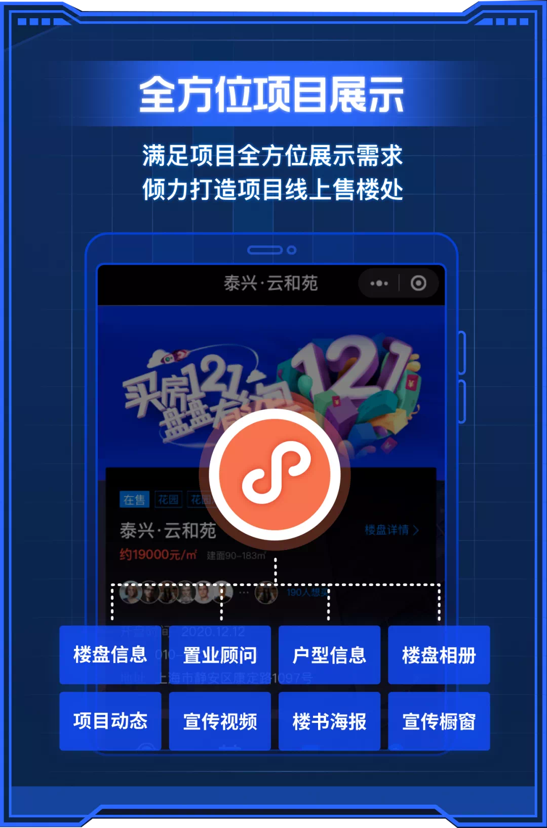 完整、丰富的智能化的线上产品,全覆盖项目三大重要环节:营销推广、蓄客销售、签约成交。