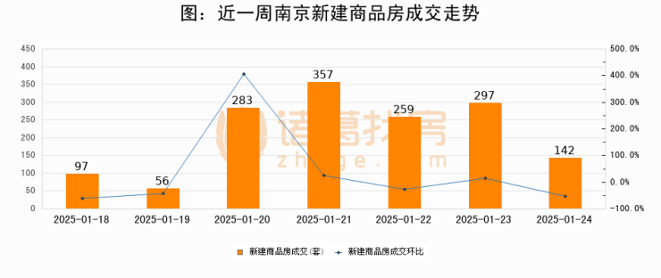 【南京成交日报】01月24日新房成交142套、二手房353套;涨价房源27套