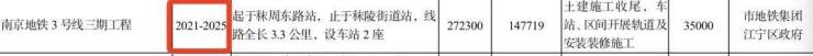 3号线三期起自3号线秣周东路站,止于秣陵街道站,线路全长3.3km,全部为地下线,共设车站2座。