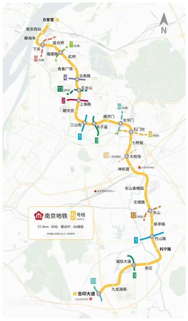 根据今年初江宁区两会报告,地铁5号线江宁段(神机营站-吉印大道站)将于今年6月通车。而5号线北段(方家营站-神机营站,暨全线),原定2024通车,现计划要到2025年才能通车了。