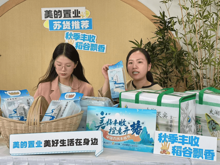 9月23日、24日,来自美的置业沪苏皖区域的业主化身“苏货体验官”走进“美好丰收,橙意开播”苏货直播助农公益直播间,将苏州鸡头米、太湖大米、绿壳蛋、0添加上海青酸菜等产自江苏各地的特色农产品,展示给全国各地的网友们。