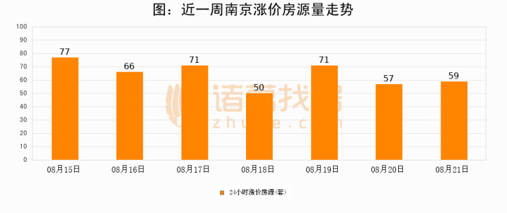根据诸葛找房数据显示,南京24小时涨价房源量为59套,较08月20日增加2套,环比上涨3.5%。与此同时,涨价房源占比小幅扩大,业主信心有所提升。