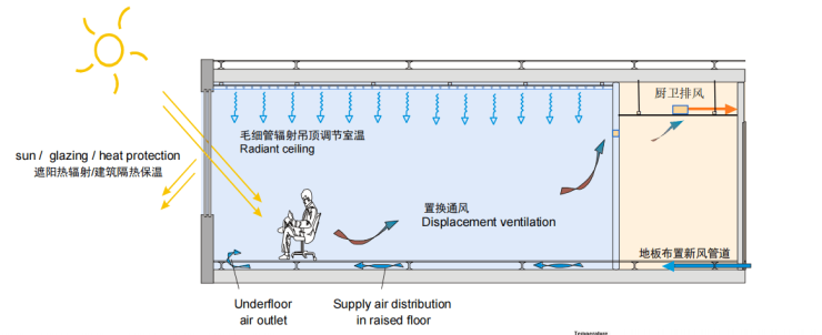 在分户式空气源热泵+毛细管网辐射系统+阳台风管机空调的运作下,全屋受热制冷均匀,并且整个空间的温度基本无差异,无吹风感。无论屋外大雪纷飞还是烈日当空,屋内依旧如春天般舒适。