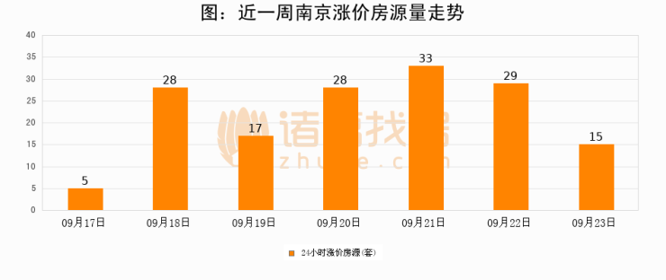 根据诸葛找房数据显示,南京24小时涨价房源量为15套,较09月22日减少14套,环比下降48.3%。与此同时,涨价房源占比小幅回落,对于购房者来说是一个入市窗口期,购房者可抓住时机入市。