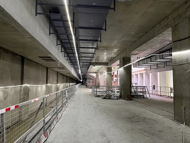 续建11号线一期,截至2023年11月,18座车站已开工,其中15座车站完成围护结构,11座车站完成主体结构。14条盾构隧道始发,其中5条盾构隧道贯通。