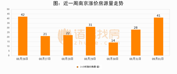 根据诸葛找房数据显示,南京24小时涨价房源量为41套,较08月31日增加13套,环比上涨46.4%。与此同时,涨价房源占比小幅扩大,业主信心有所提升。