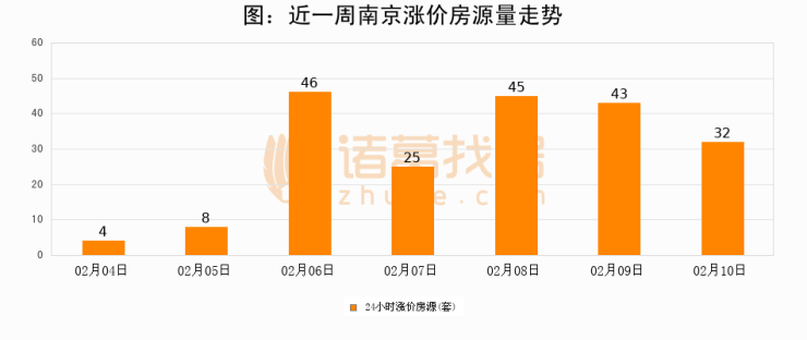 根据诸葛找房数据显示,南京24小时涨价房源量为32套,较02月09日减少11套,环比下降25.6%。与此同时,涨价房源占比小幅回落,对于购房者来说是一个入市窗口期,购房者可抓住时机入市。