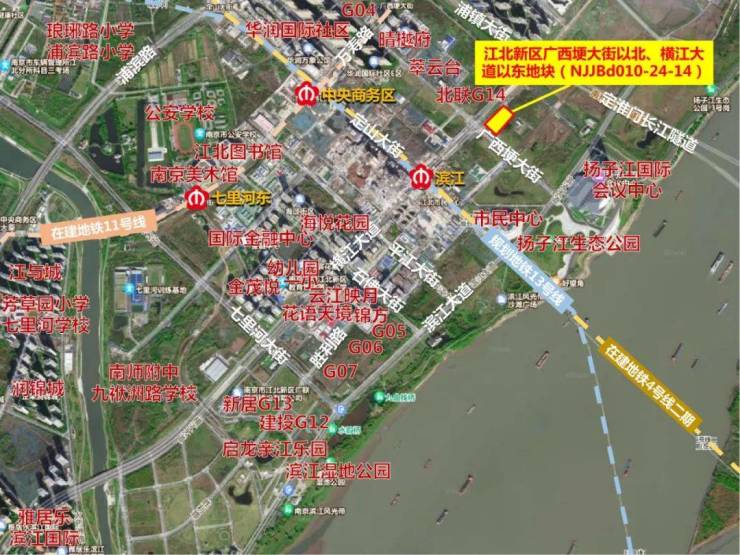 NO.新区2023G14、G15、G17、G18四幅地块位于江北新区中心区,紧邻定淮门长江隧道,西侧规划有多幅教育用地,其中一幅地块于今年2月正式确定将引入金陵中学优质教育资源,将提档中央商务区的教育配套品质。