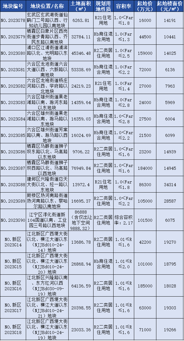 刚刚南京发布了第九批次住宅用地挂牌出让公告(2023年宁出第18号),共推出18幅涉宅用地,其中12幅纯住宅用地、6幅商住混合用地,总用地面积约56.1公顷,起拍总价135.37亿元,涉及河西、江北核心区、城北、城东、仙林、浦口城南中心、六合等多个片区。