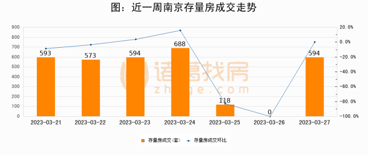 从存量房来看,2023年03月27日南京存量房单日成交594套,比昨日增加594套,环比上涨0%。从近一周存量房成交来看,南京存量房日均成交套数为451套,03月27日单日成交594套,高于近一周平均水平31.7%。