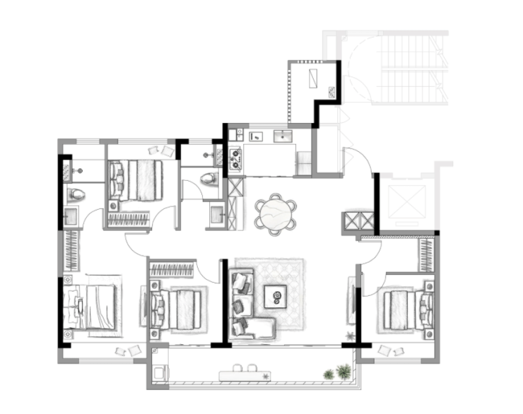 建面约143m真四房,两梯两户,方正通透,自在舒展;大尺度横厅,多功能“社交公区”,雅呈待客仪礼;跑道式宽景阳台,坐观流水与闲云,四季畅怀。