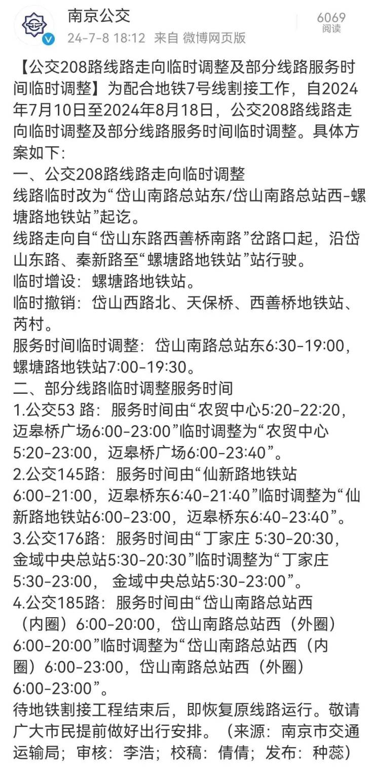 A:南京地铁提醒广大市民提前做好出行时间和路径规划,相关公交配套保障方案已在南京公交官方微博发布,请大家及时关注。