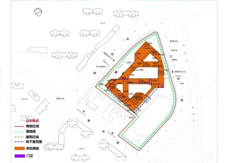 项目位于南京江北新区,和旭路以东,万和路以西,惠泽路以北。小学规划用地性质为A33a用地,用地面积约37272.85平方米,容积率≤1.0,绿地率≥35%,建筑高度≤24米,拟建总建筑面积约4.44万平方米,其中地上建筑面积约3.65万平方米,地下建筑面积约0.78万平方米,主要建设内容为普通教学楼、专业教学楼、图书馆、报告厅、风雨操场等教学用房。