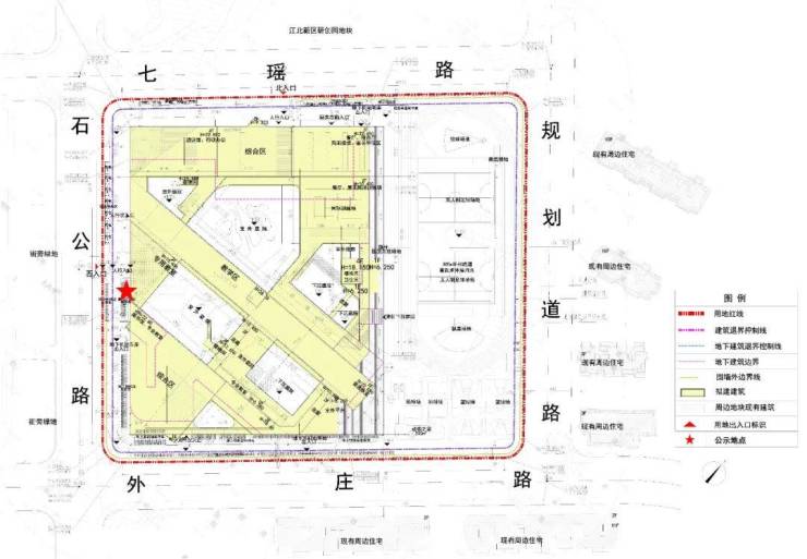 项目 位于南京江北新区顶山街道,用地西侧为石公路,东侧为规划道路,南侧为外庄路,北侧为七瑶路。规划用地性质为初中用地,用地面积约39646.47平方米,容积率≤1.0,绿地率≥35%,建筑高度≤24米。拟建总建筑面积约4.7万平方米,其中地上建筑面积约3.5万平方米,地下建筑面积约1.2万平方米。主要包括教学、办公、图书阅览、食堂、报告厅、游泳馆、风雨操场等功能。