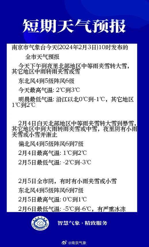 南京市气象台今天(2月3日)10时发布全市天气预报