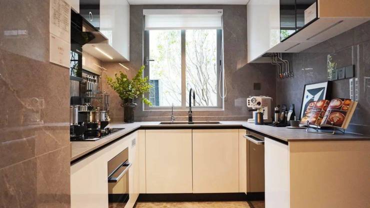 2、U型厨房、餐厅空间相对独立但又和客厅相连,互相借用;