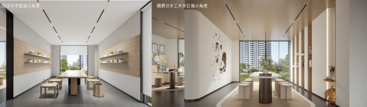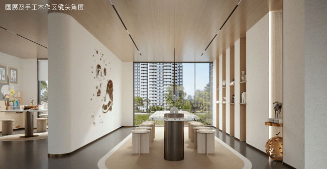 同时,社区配有架空层泛会所,实现将家庭场景延展至公共空间,涵盖展览展示、瑜伽运动以及四点半学堂等功能区,让不同年龄、不同兴趣的业主们,无论晴雨周末,都有释放身心的活动场所。