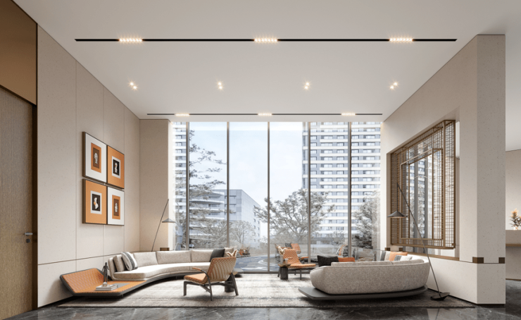 凤樾府精心构筑地上、地下双入户大堂,归家仪式感拉满。社区大堂设计非常惊艳,规格也很高,光是硬装成本就达到3000元/㎡,质感拉满。