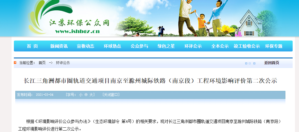 宁滁城际(南京段)二次环评发布,将于今年开工,工程总投资约34.35亿元。