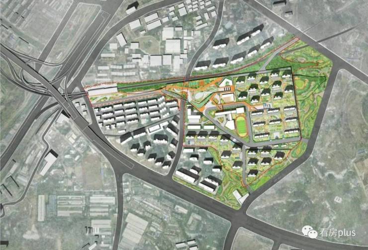 城市设计凸显“以绿为脉”的开放空间格局,强化城市景观界面,打造公共活力轴。通过TOD一体化规划打破铁路阻隔,带动人流沟通,激活片区社区活力、实现周边区域功能联动,着力打造生态复合功能区。