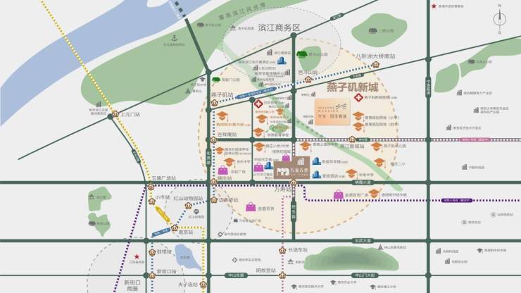 【万象商业】约21万方万象系商业预计23年底即将开业,与招商花园城一街相望;燕子矶滨江商务区(在建)、南京首家盒马X会员店等商业触手可及,咫尺之间近享繁华与便利。