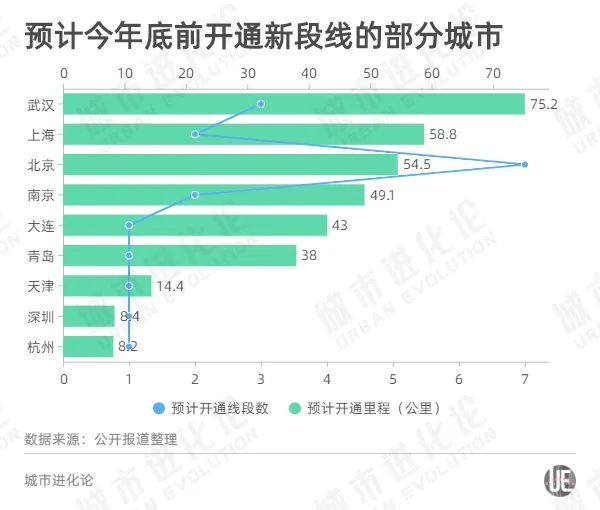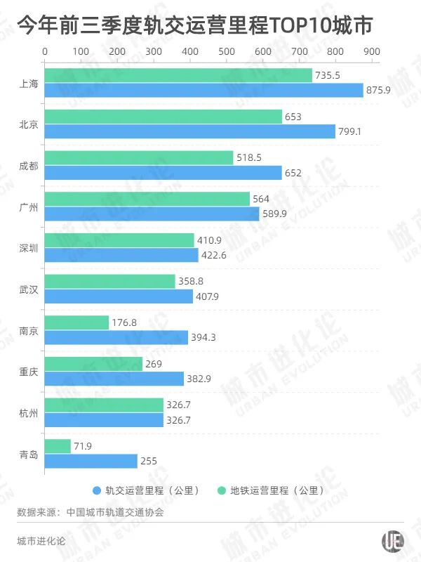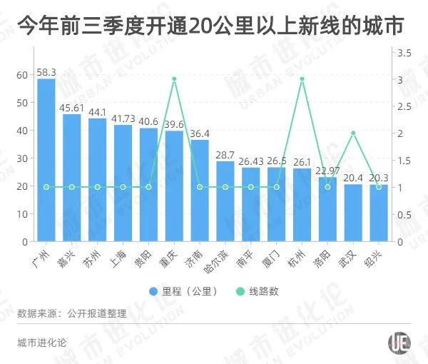 2018年,青岛一口气开通124.6公里线路;2019和2020年,成都分别以105.9公里和216.3公里的新开通里程蝉联“冠军”;今年,包括北京上海在内,全国前三季度的新增已达583.7公里,年内预计还将增加500公里左右。