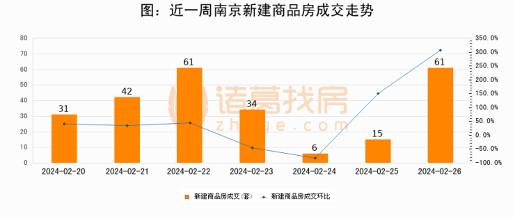 【南京成交日报】02月26日新房成交61套、二手房299套;涨价房源72套