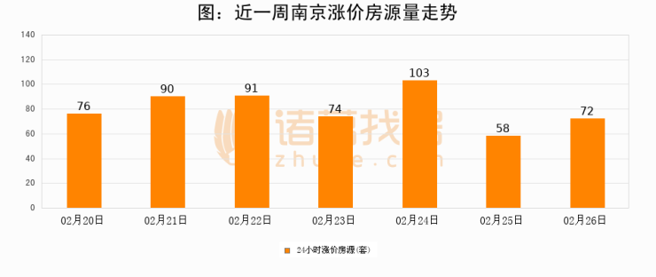 根据诸葛找房数据显示,南京24小时涨价房源量为72套,较02月25日增加14套,环比上涨24.1%。与此同时,涨价房源占比小幅扩大,业主信心有所提升。