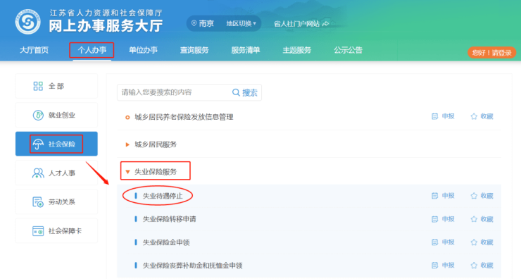登录“江苏人社网办大厅”,点击“个人办事—社会保险—失业保险服务—失业待遇停止”模块进行办理。