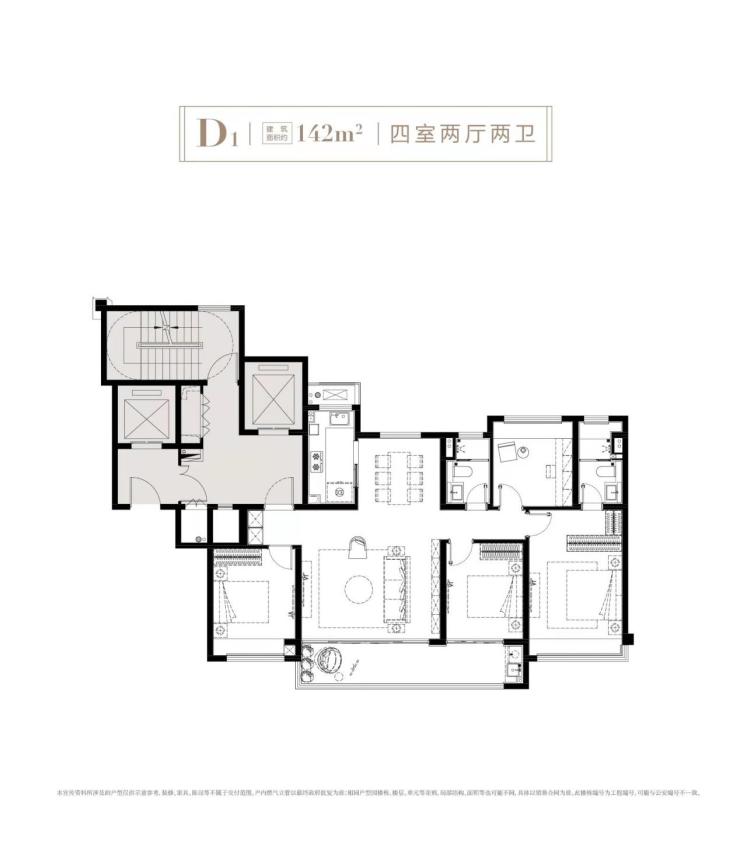建筑面积约142㎡环幕四居,约15.2米PLUS尺度南向大面宽,四开间朝南,兼具优质观景面与采光功能性。在独立休憩空间上,通过整合睡眠静区体系,满足三卧朝南的同时,北向卧室形成可变的空间,可以是先生的书房、太太的化妆间、二胎家庭的婴儿房……满足全龄段家庭成长需求。
