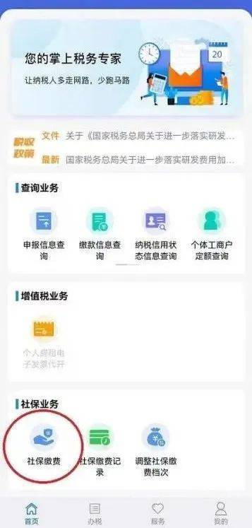 关注“南京医保”公众号,点击“服务大厅”进入江苏税务社保缴纳小程序进行缴费。