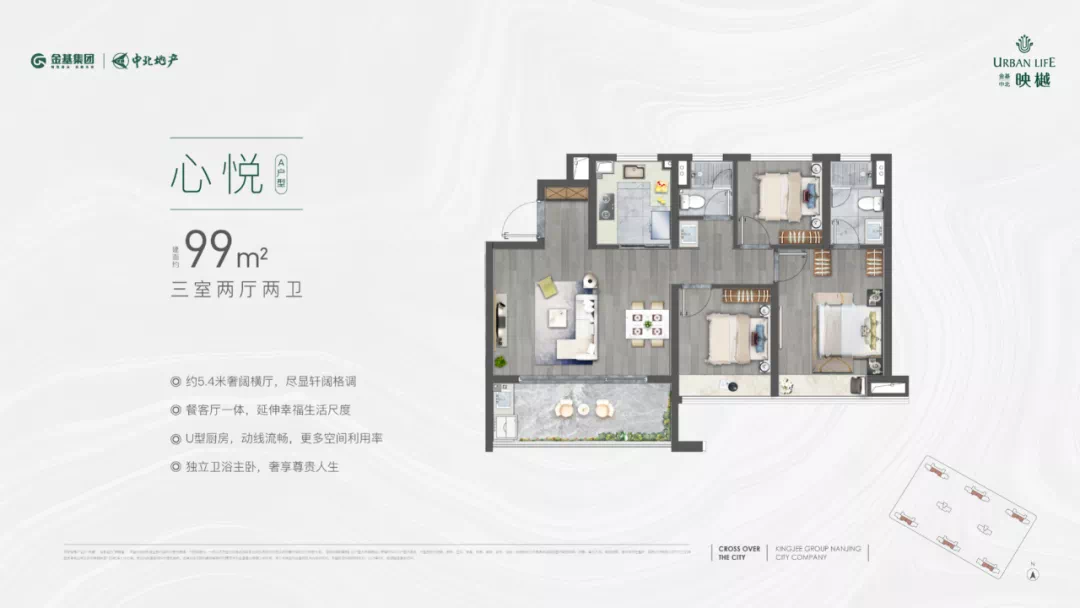 金基中北映樾位于江北核心区、中央商务区、江苏自贸区三区交汇的核心地段。