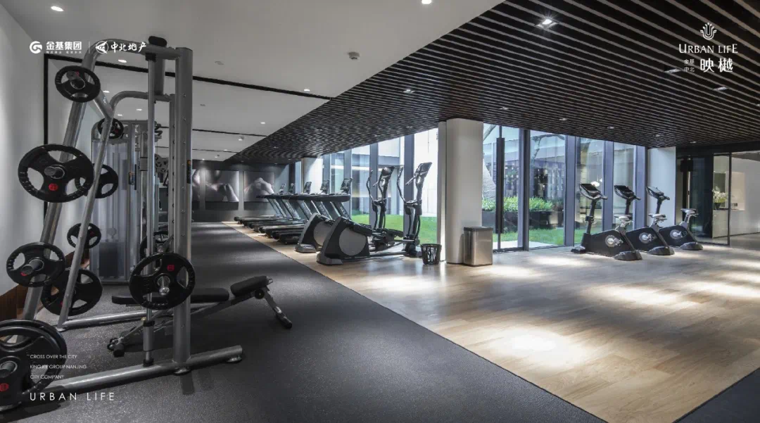 会所是全水景包围设计,配备恒温泳池、健身房、书吧等设施。其中健身房在金基所有会所体系中是较大的,达到约185㎡。