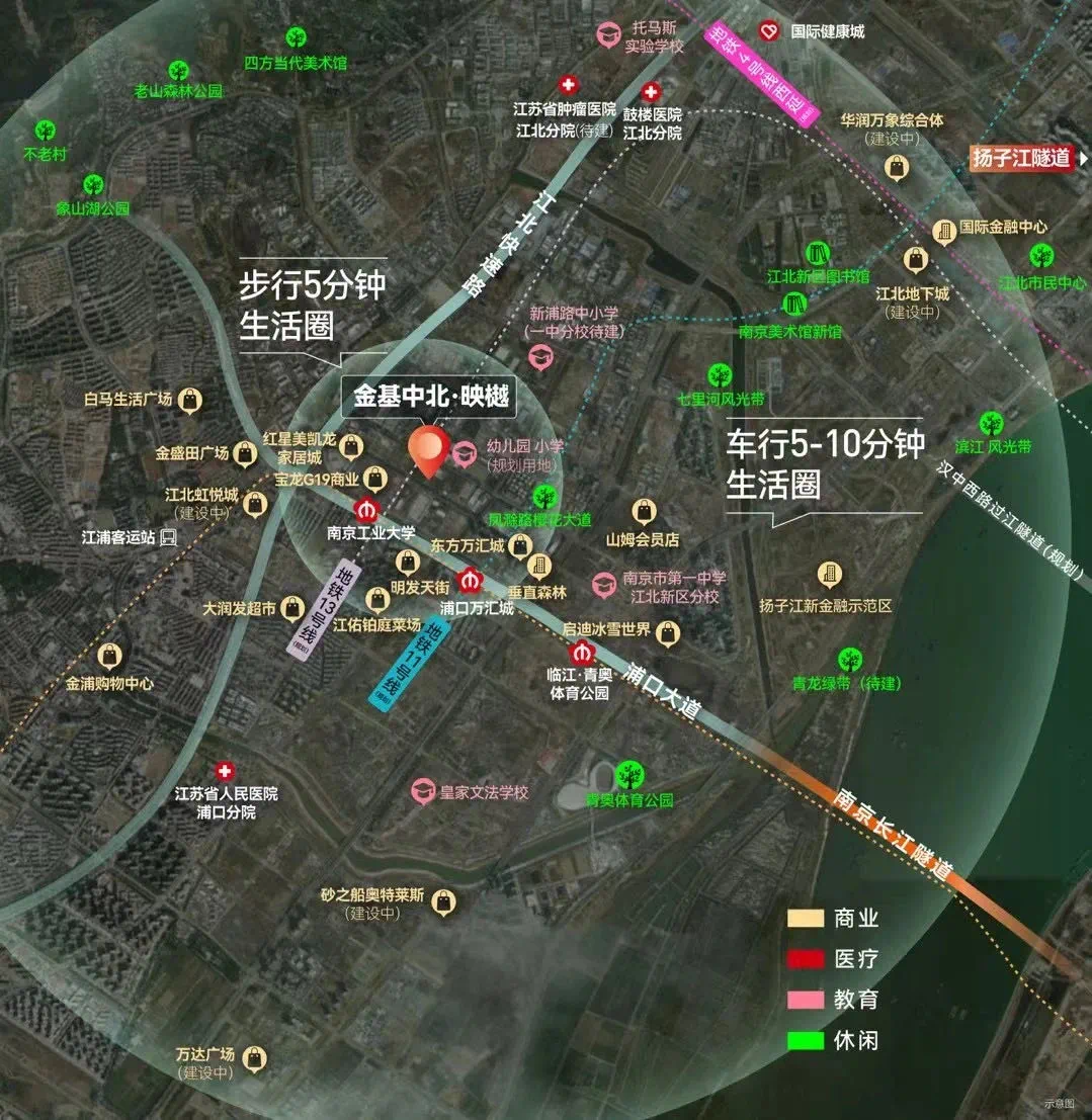 教育上,项目周边有多幅教育规划用地,目前江北核心区的教育已经基本被南京一中教育集团覆盖,此外还有多所国际学校环伺。