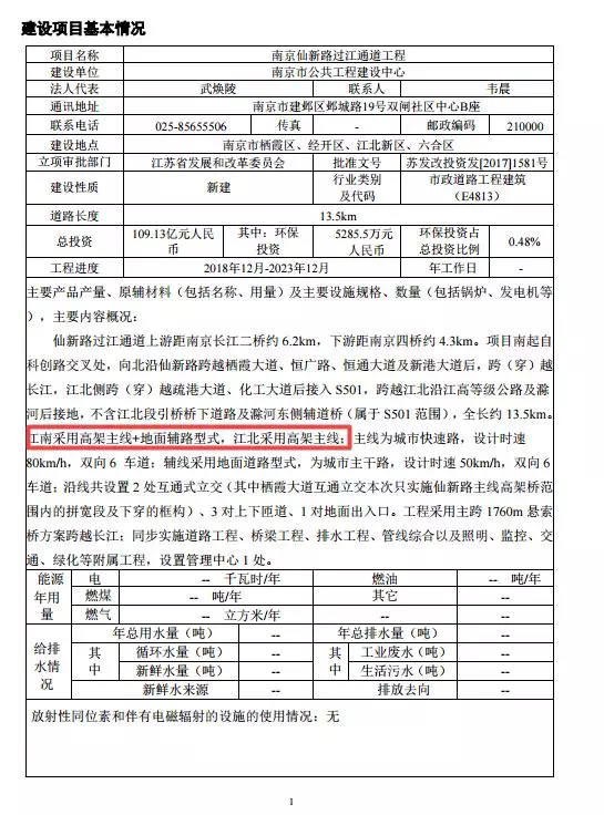 今年4月13日,在江苏环保公众网上公布了龙潭过江通道环评的第二次公示,该项目拟定2019年下半年开工,2024年下半年建成,工期5年,拟以桥梁形式跨越长江。
