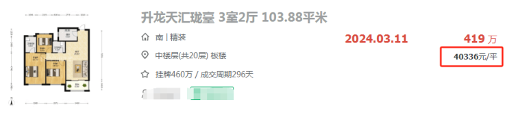 升龙天汇一套103㎡的房源,成交价也超4万/㎡。