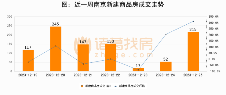 【南京成交日报】12月25日新房成交215套、二手房336套;涨价房源44套
