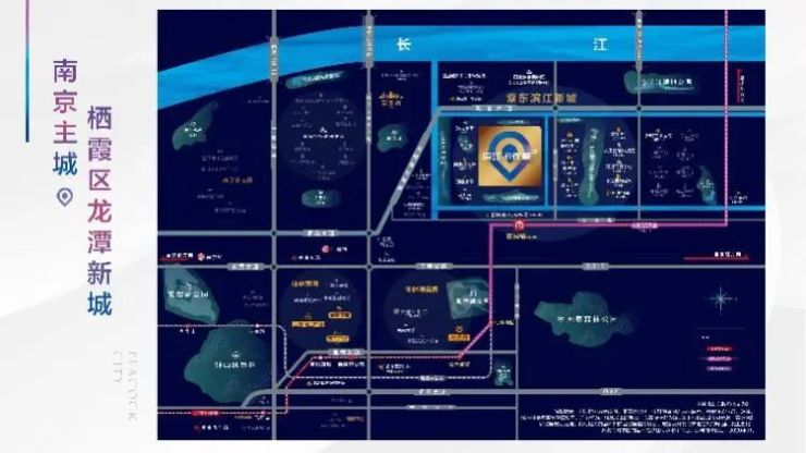 滨江观澜府孔雀城位处龙潭新城。周边2020年3月通车的疏港大道,有效地串联了长深高速、三环路与312国道,紫东滨江直达仙林、新街口等南京繁华区域的通勤时间直线提速。
