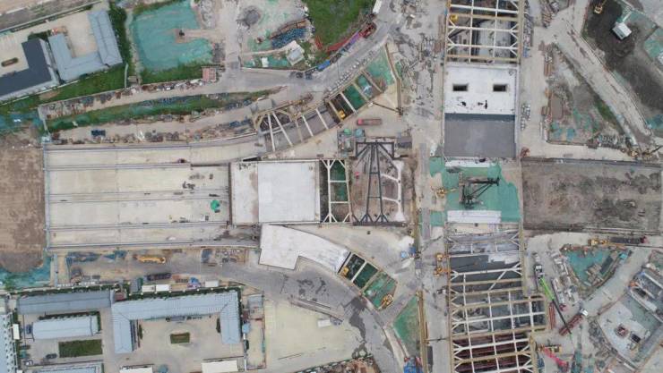 这是建宁西路过江通道抵达江北后的第一个互通。据了解,今年5月,地下互通完成底板浇筑后,即开始了向上分层施工阶段。目前,多个区块已经完成地面封顶,尚余两侧前往横江大道的分流匝道隧道还在开挖阶段。
