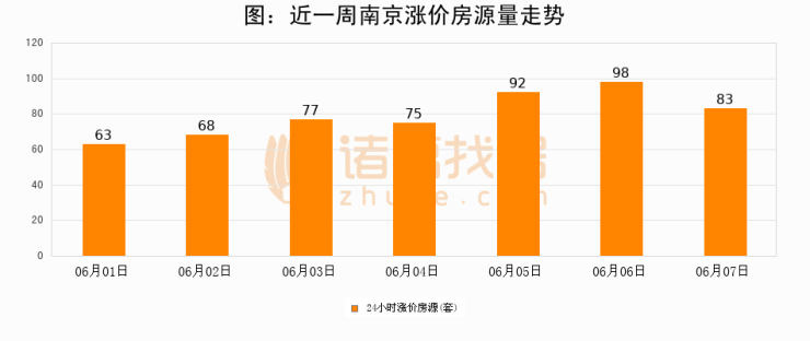 根据诸葛找房数据显示,南京24小时涨价房源量为83套,较06月06日减少15套,环比下降15.3%。与此同时,涨价房源占比小幅回落,对于购房者来说是一个入市窗口期,购房者可抓住时机入市。